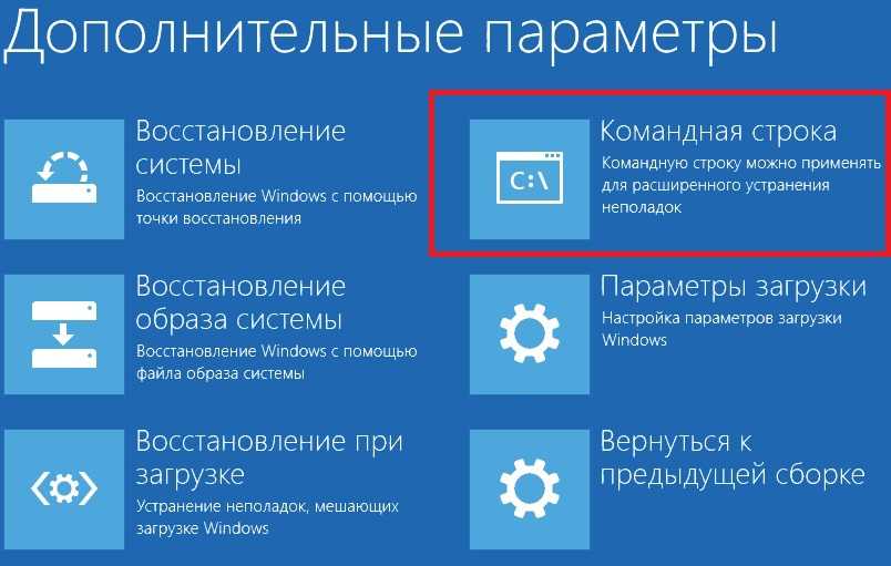 На экране «Диагностика проблем» выбираем «Расширенные опции». Нажимаем «Командная строка».