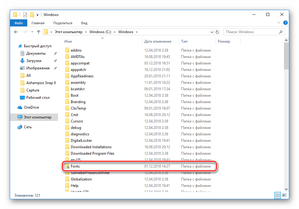 Попасть в нее можно указанным выше способом или перейдя по пути C:WindowsFonts .