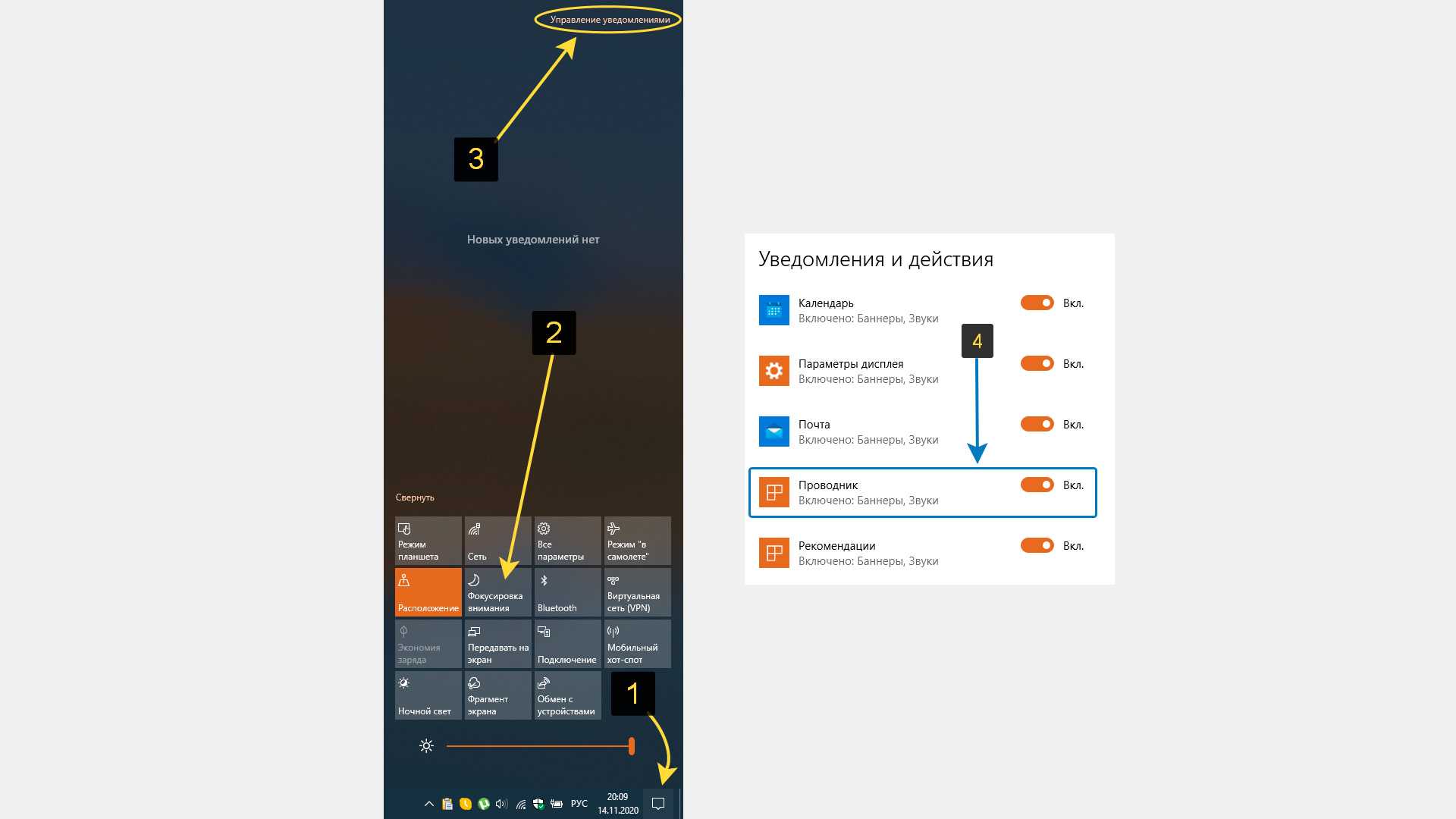 Универсальный метод, подходящий для всех девайсов, заключается в задействовании области уведомлений панели задач. Это происходит следующим образом: