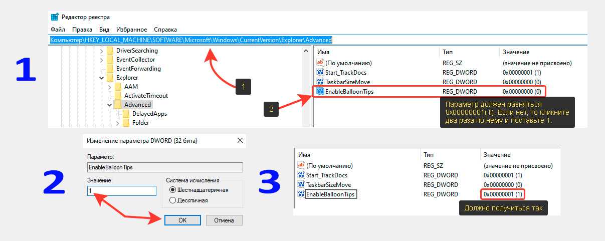 Этап 1 — проверка параметра EnableBalloonTips: