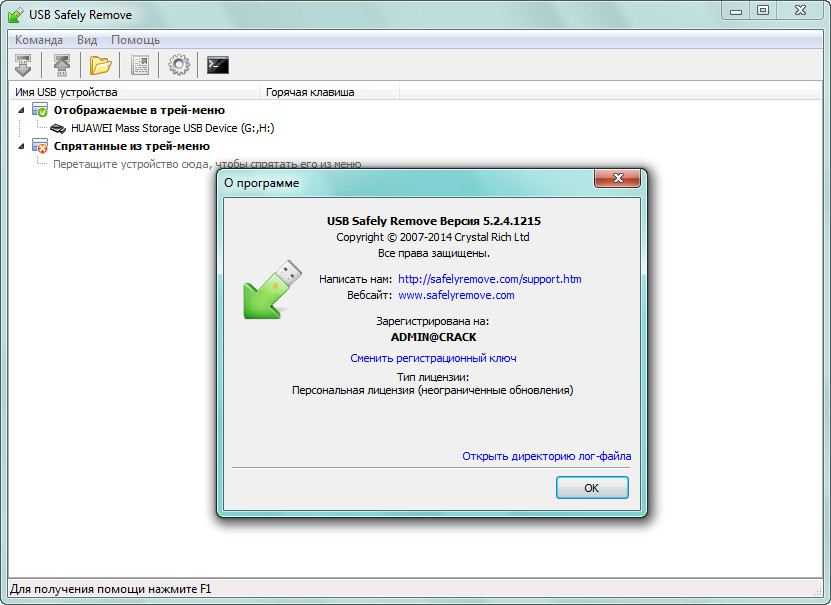 Извлечение с помощью утилиты USB Safely Remove