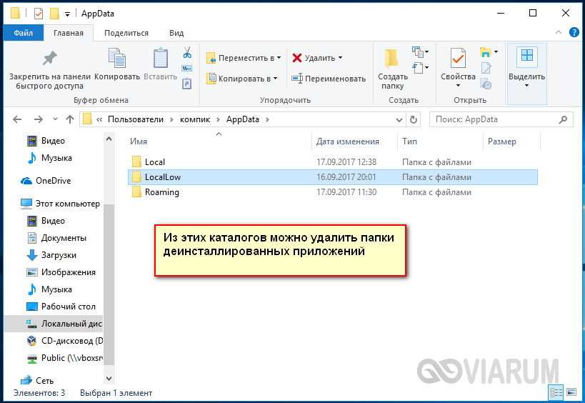 То же самое касается папок LocalLow и Roaming, удалять из них допустимо только те каталоги, которые принадлежали ранее деинсталлированным приложениям.