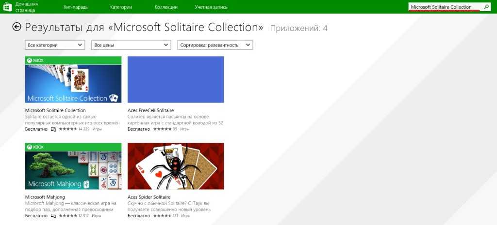 Также эти игры не установлены по умолчанию в операционной системе. Поэтому, чтобы пользоваться ими, необходимо скачать их из Магазина Microsoft: