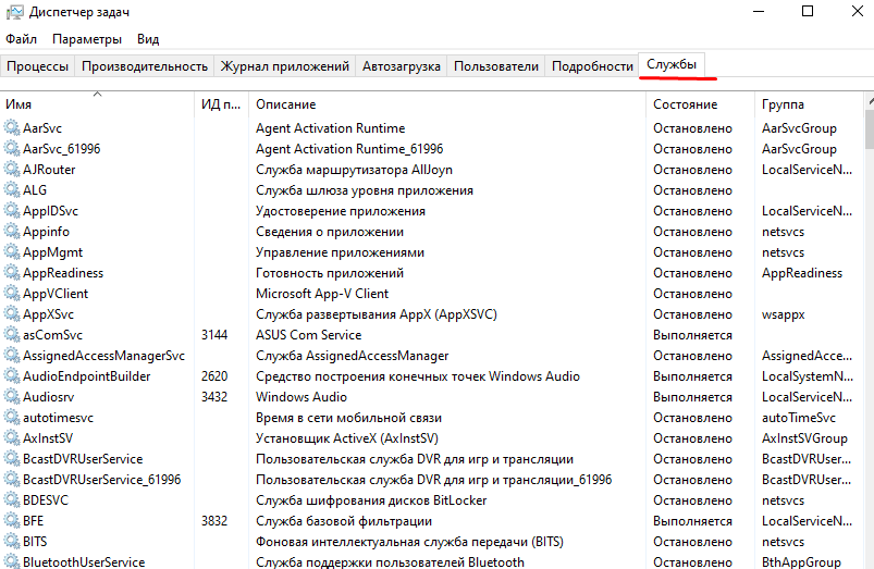 - Переключиться на раздел «Службы» в верхней графе параметров.