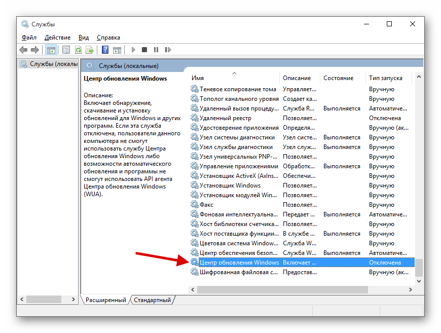 Бывает так, что нужная служба отключена и в этом заключается причина возникновения проблем с загрузкой обновлений.