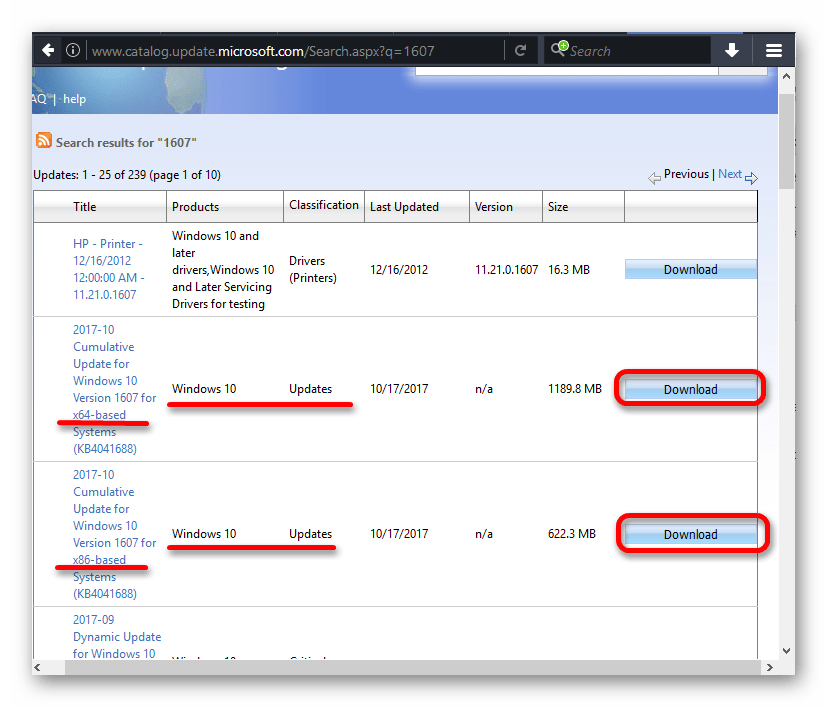 E Майкрософт есть каталог обновлений Виндовс, откуда каждый желающий может самостоятельно скачать их. Данное решение также может быть актуально для апдейта 1607.