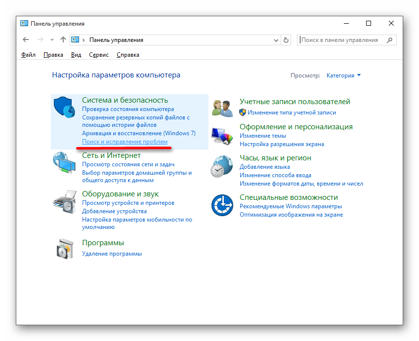 В разделе «Система и безопасность» найдите «Поиск и исправление проблем».
