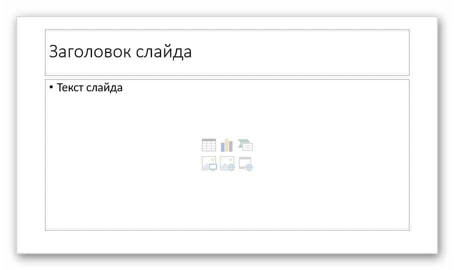Все дальнейшие кадры будут по умолчанию стандартными и иметь две области – для заголовка и содержимого.