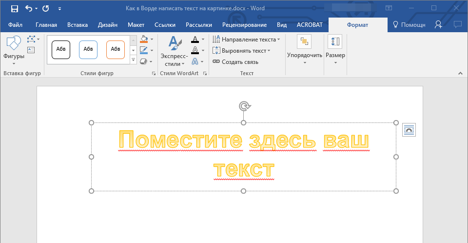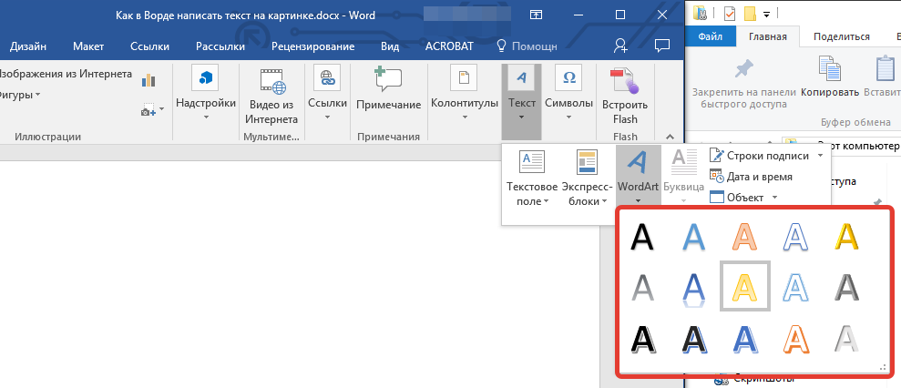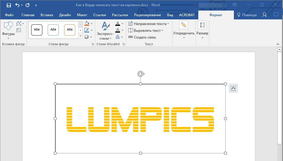 Печатать слова поверх рисунка или картинки можно, или используя фигуры WordArt, или сделав обычную надпись. Теперь давайте расскажу про эти два способа подробнее.