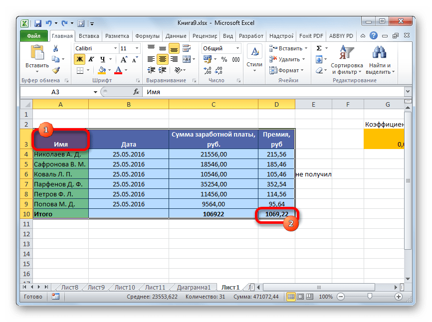 - Нажать на поле «Имя» (расположено под основной панелью с инструментами по левую сторону таблицы).