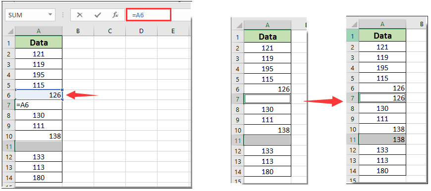1, Удержание Ctrl key и выберите несколько несмежных ячеек в одном столбце / строках одну за другой.
