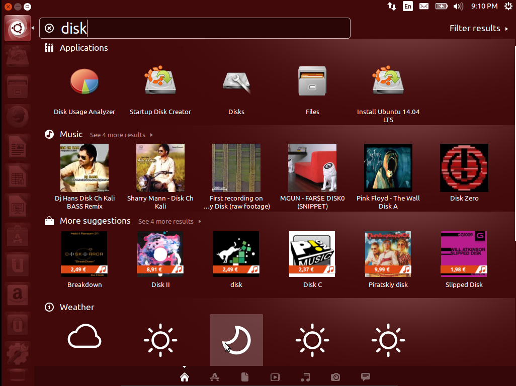 Особое внимание хотелось бы обратить на самую верхнюю кнопку с логотипом Ubuntu — это главное меню (или Dash). Главное меню — очень мощный и удобный поисковый инструмент, который поможет найти нужные программы и файлы не только на вашем компьютере, но и в Интернете.
