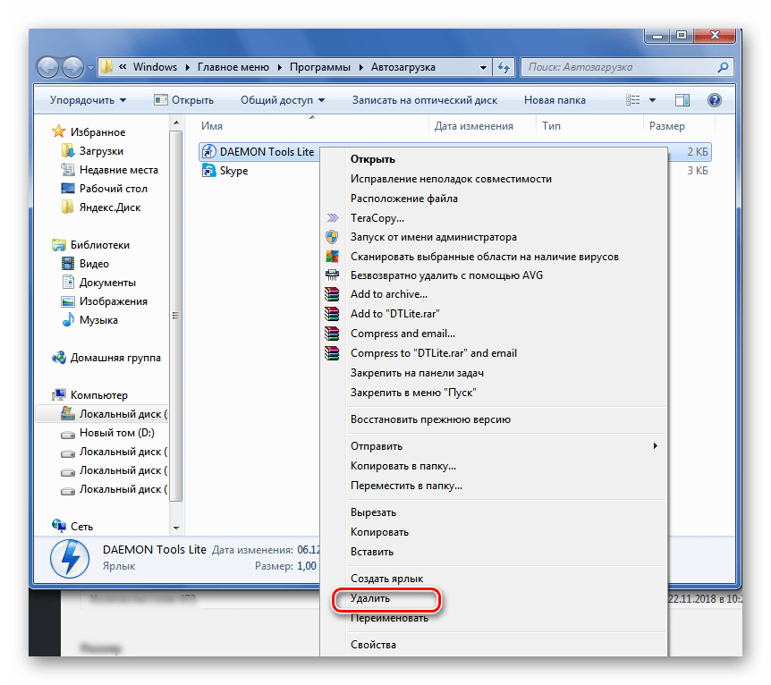Способ 1: Удаление ярлыков из папки автозагрузки
