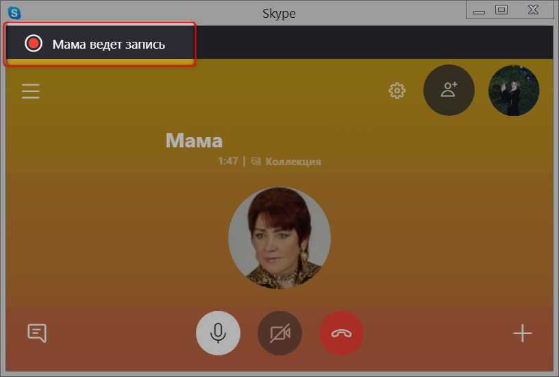 Собеседник в окне своего Скайпа тотчас же увидит уведомление, о том, что ведётся запись.