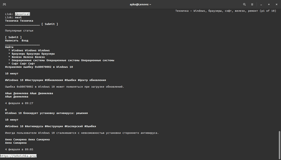 Самый популярный способ просмотра Интернета в терминале — это веб-браузер Lynx. Это полностью текстовый браузер, работающий в Unix-подобных операционных системах, а также с командной строкой MS-Dos. Ему 26 лет, и в настоящее время это самый старый веб-браузер, который все еще активно разрабатывается.