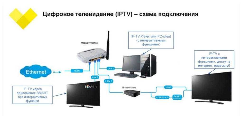 Если телевизор с технологией SMART TV — не нужно никаких дополнительных устройств. Требуется высокоскоростной интернет и любой доступный IPTV-плеер, который можно скачать как с официального сайта, так и со сторонних ресурсов.
