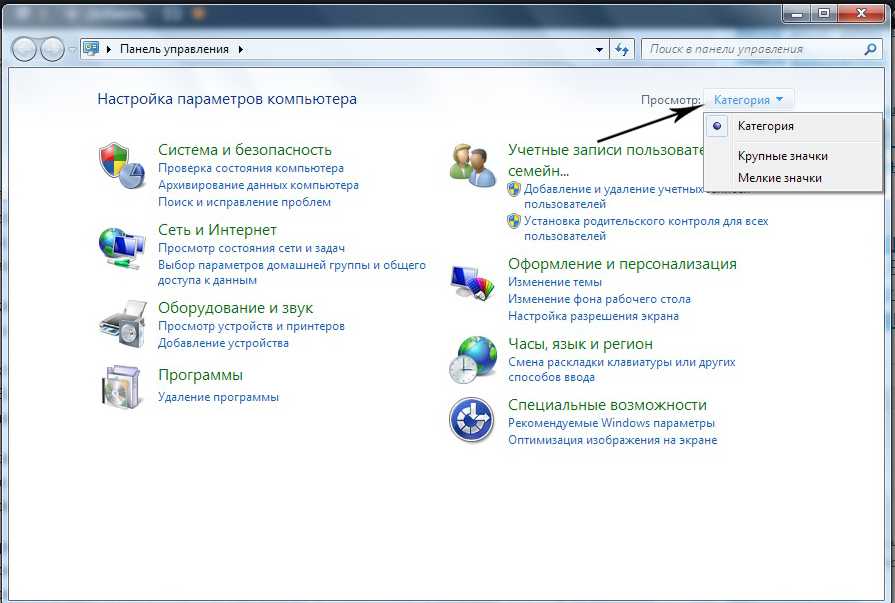 Итак, если там выставлен параметр «Просмотр по категориям», отыщите строку «Сеть и интернет», кликните по ней