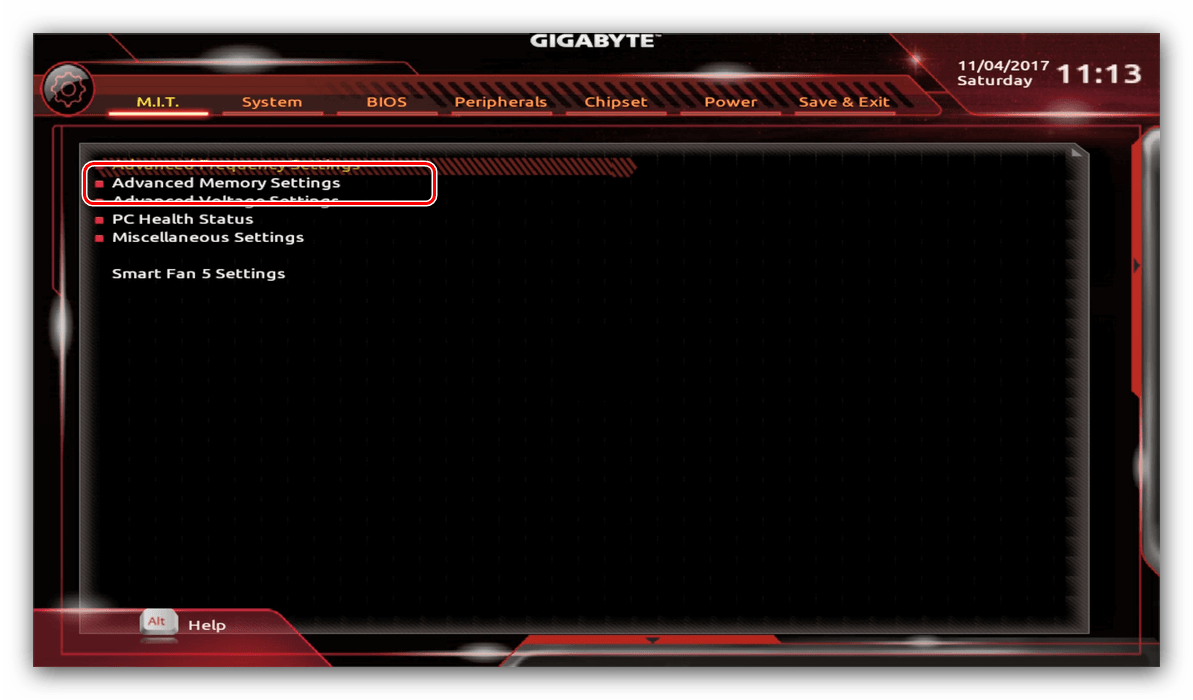 - Из главного меню перейдите к параметру «Advanced Memory Settings», расположенному на вкладке «M.I.T».