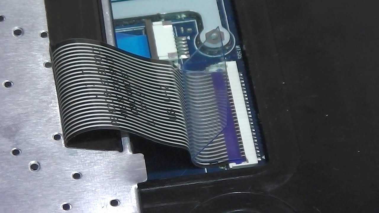 При помощи специального переходника (шлейфа) клавиатурный блок подсоединяется к материнской плате. Это не USB-разъем, используемый в настольных компьютерах для подключения периферии. У шлейфа уникальный коннектор, который отличается от модели к модели. Зачастую поломке этого комплектующего предшествуют малозначимые сбои в работе клавиатуры. Например, если у нее есть подсветка, то ее яркость может снизиться.