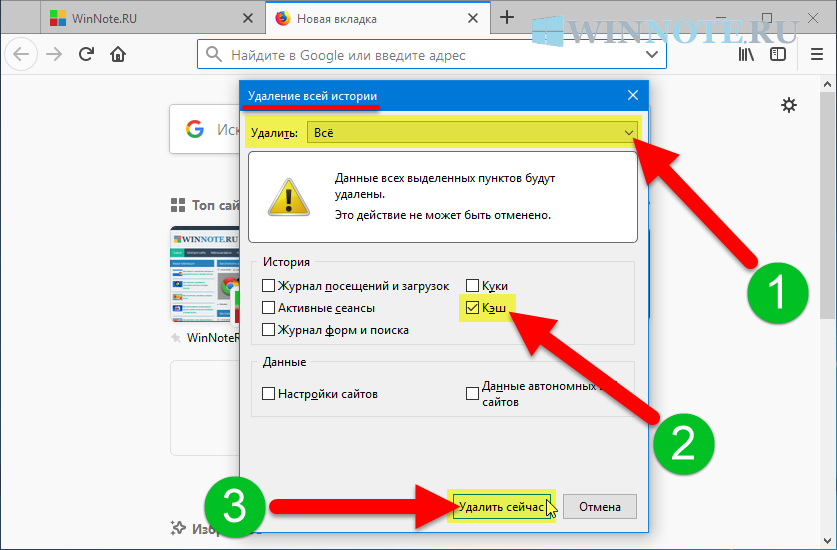 Как удалить (очистить) кэш в браузере Mozilla Firefox