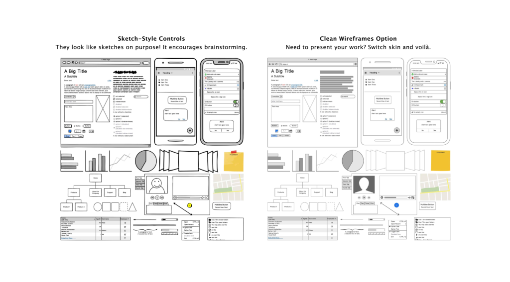 Balsamiq продвигает традиционный подход к прототипированию, как с помощью ручки и бумаги. Инструмент заточен на мокапы и вайрфреймы, которые призваны выразить идею с точки зрения структуры и содержания. Упор на эстетику тут минимальный. Продукт идеален, когда нужно оперативно собрать макет, вайрфрейм или эскиз сайта или приложения.