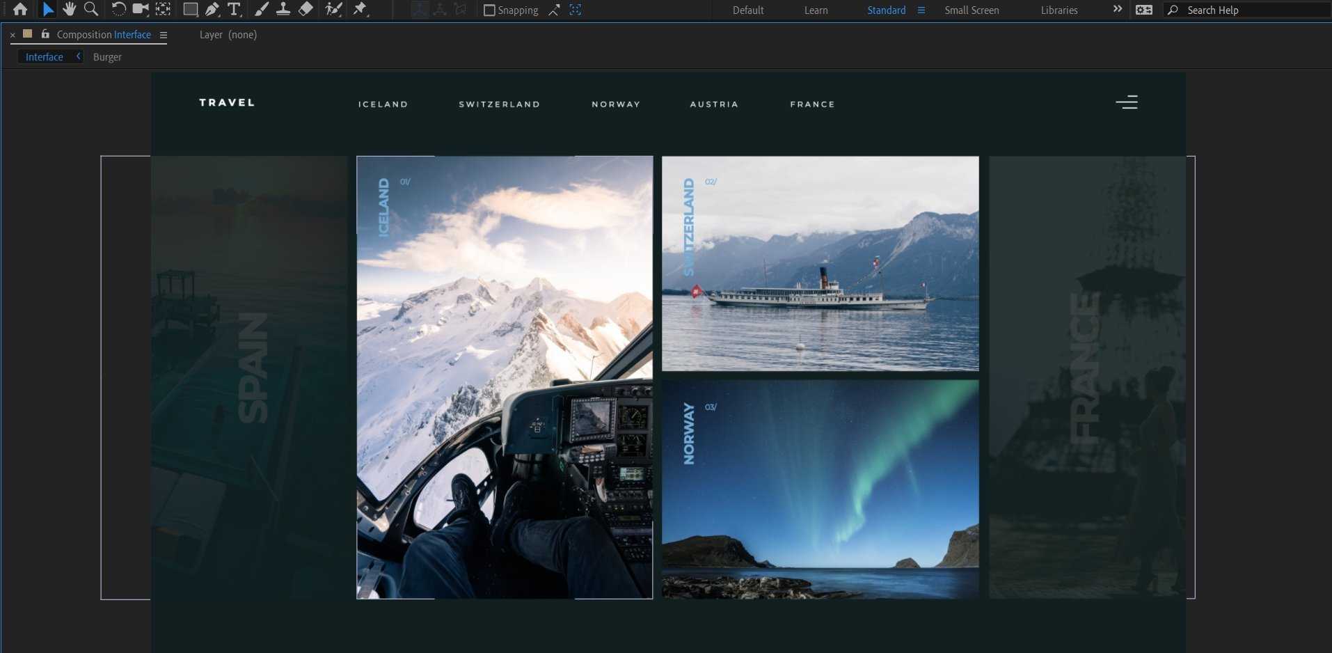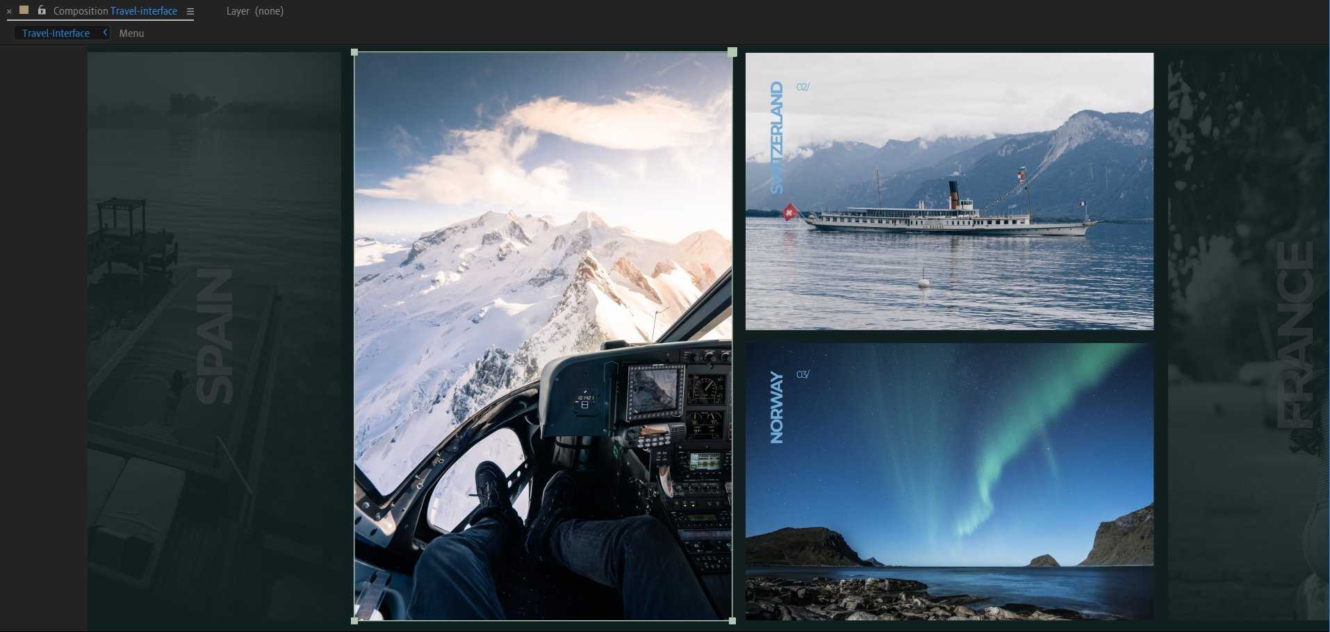 Тоже самое проделайте с фотографией Spain. Настройте появление текста самостоятельно, его анимация делается точно так же, как мы делали ранее.