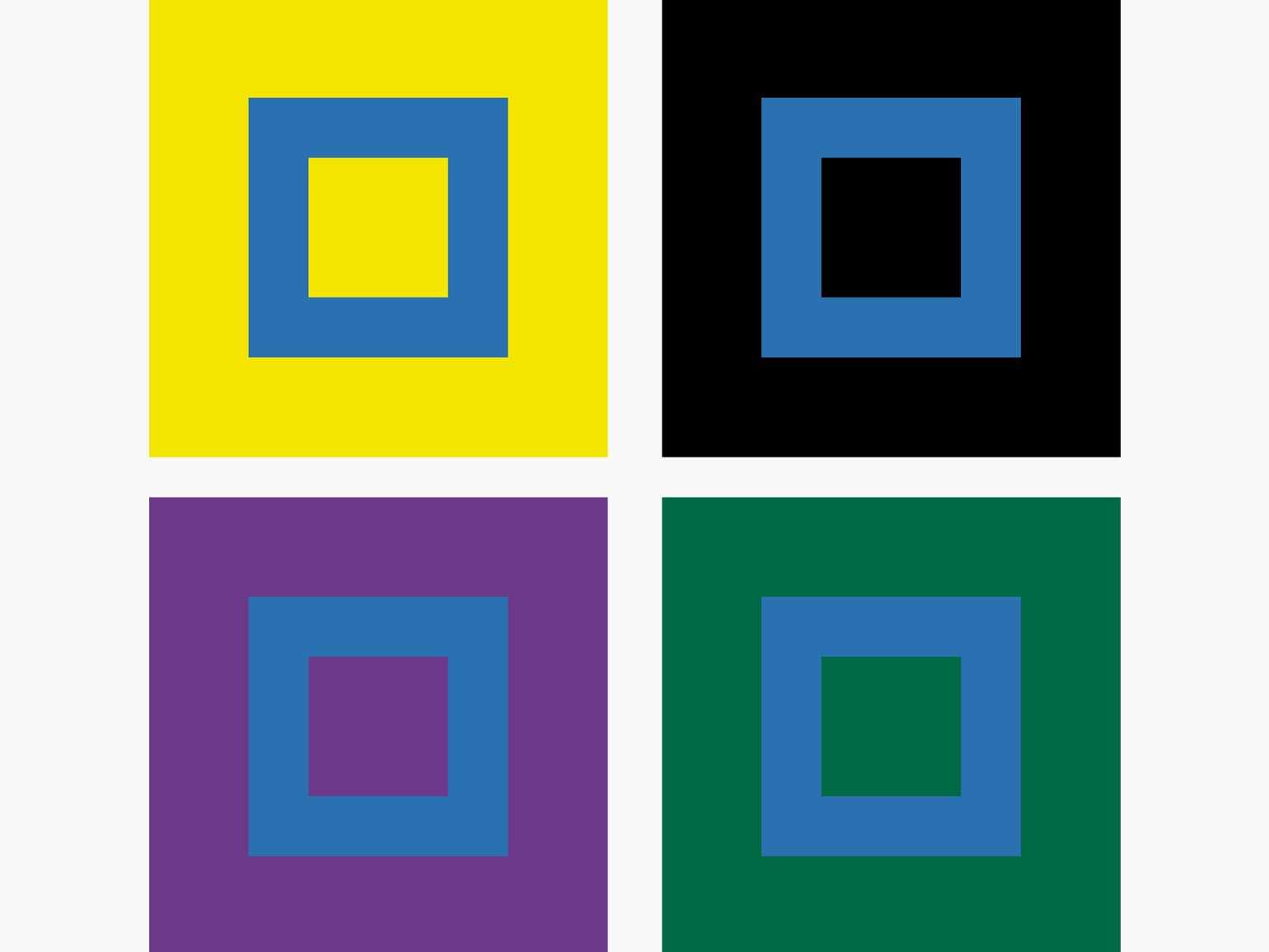 На жёлтом фоне синий приобретает зеленоватый оттенок, а на чёрном — сияет в своей чистоте и силе. Иллюстрация: Skillbox Media