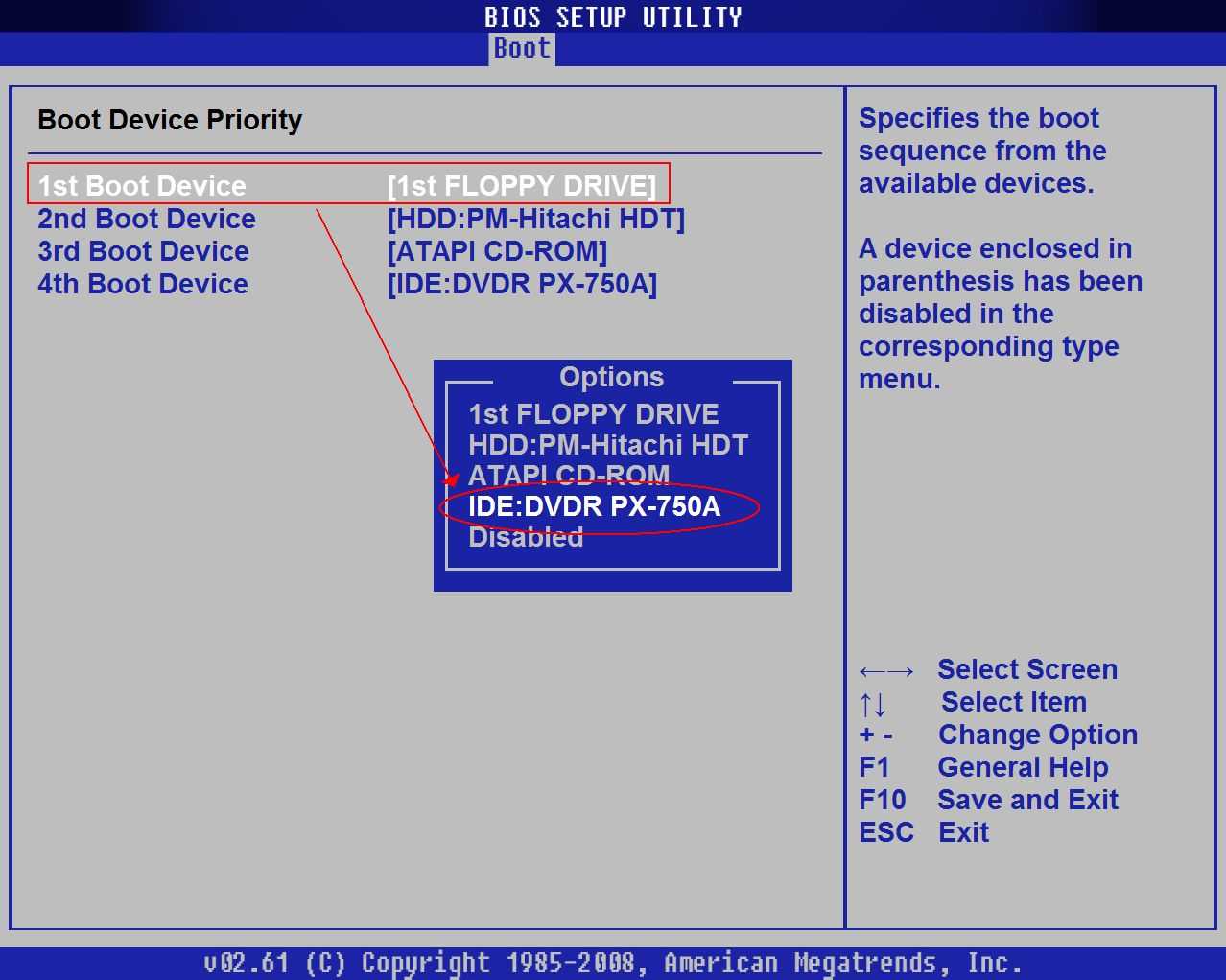 - Hard Disk Boot Priority— последовательность загрузки ПК.