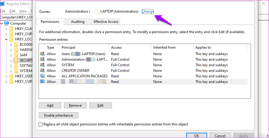 Стандартные учетные записи пользователей не имеют разрешения на редактирование записей реестра. Только учетные записи администратора имеют эти привилегии. Чтобы предоставить разрешение, запустите редактор реестра и перейдите к структуре папок, в которую вы пытались импортировать файл реестра.