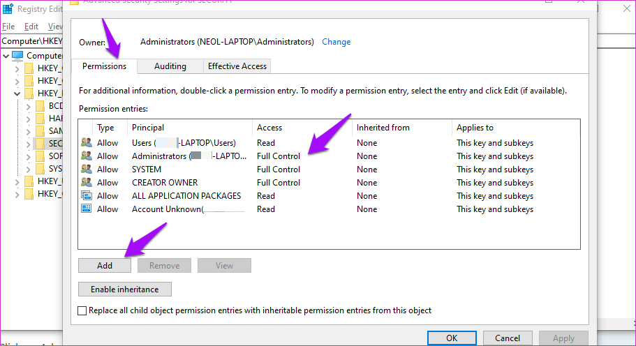 Учетные записи обычных пользователей не имеют права редактировать записи реестра. Только учетные записи администратора имеют эти привилегии. Чтобы предоставить разрешение, запустите редактор реестра и перейдите к структуре папок, в которую вы пытались импортировать файл реестра.