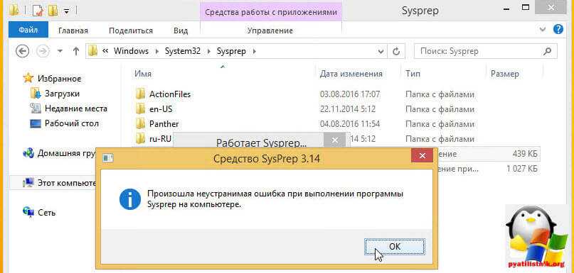 Произошла не устранимая ошибка при выполнении программы Sysprep на компьютере в Windows 8.1