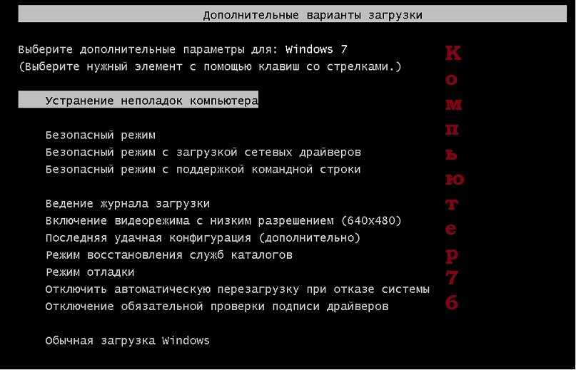 создадим изначально неправильные условия установки: вам нужен Безопасный режим. То есть во время очередной попытки установить системные файлы пытаемся войти в меню Дополнительных вариантов загрузки (обычно это клавиша F8)