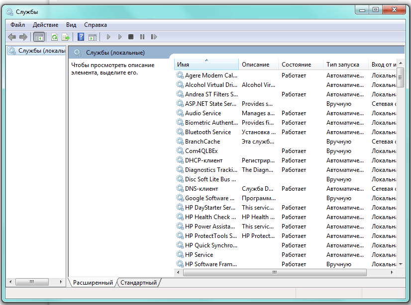 В открывшемся окне можно редактировать перечень служб. Узнать, за что отвечает та или иная служба, просто — здесь есть краткое описание каждого элемента.