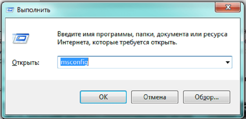 Одновременно нажимаем клавиши Win (со значком Windows) и R — появится окно «Выполнить». В поле вводим msconfig и жмём «ОК».