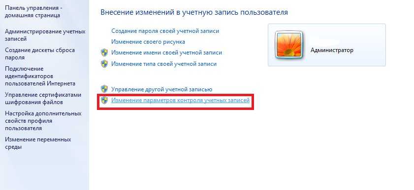 Далее выбираем соответствующий задаче пункт «Изменение параметров контроля учетных записей».