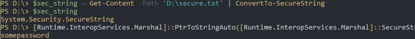 Мы можем открыть этот, и преобразовать зашифрованный пароль в объект SecureString: