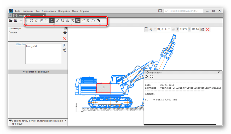 Содержащийся в файле фрагмент чертежа будет обработан и помещен в зону просмотра.
