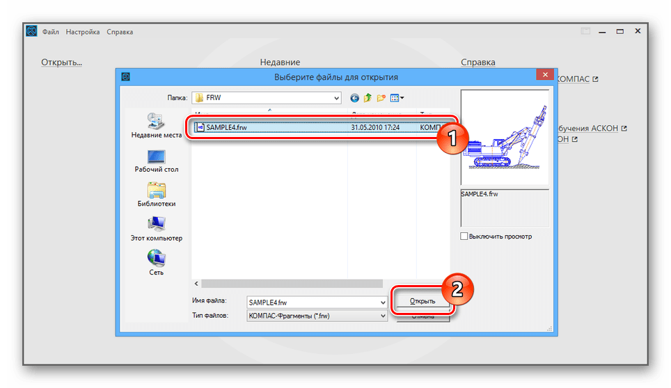 Наиболее удобный метод открытия фрагментов чертежей в этом формате заключается в использовании полнофункционального редактора КОМПАС-3D. При этом вы можете воспользоваться бесплатной версией редактора, предоставляющей несколько ограниченный набор инструментов, но поддерживающей формат FRW.
