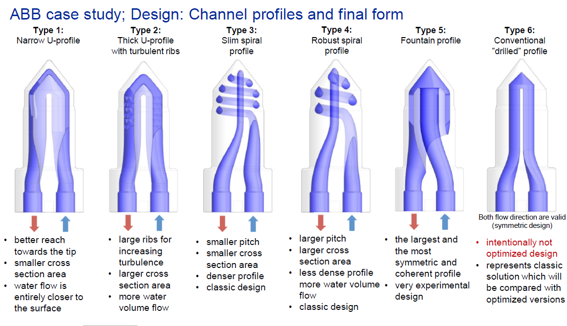 Рисунок 1. Профили каналов охлаждения и финальная форма