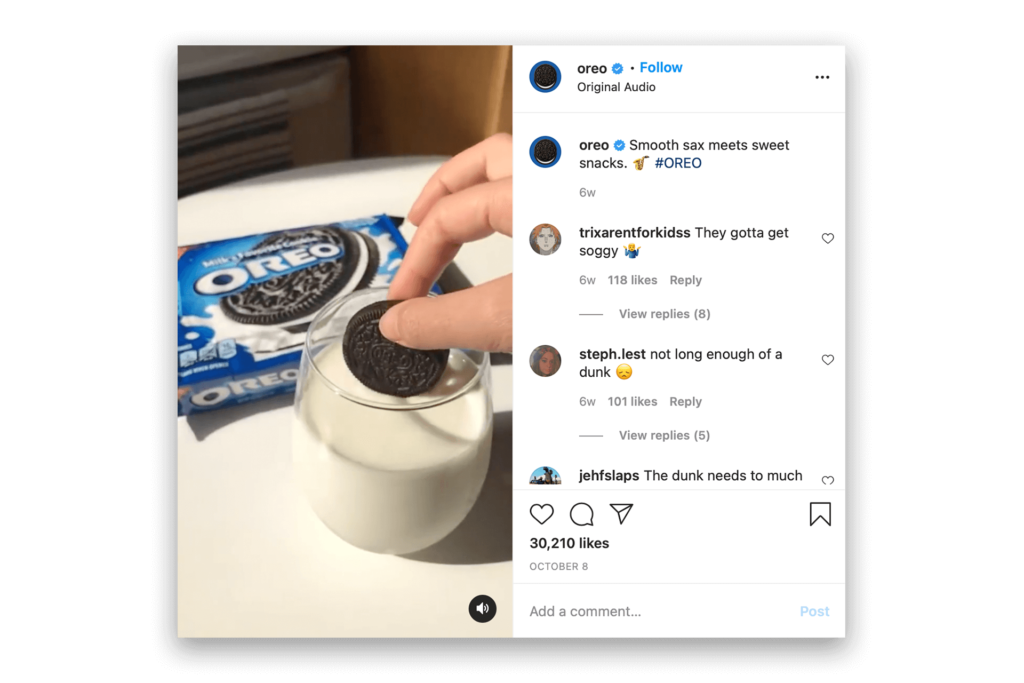 Если это крем, то покажите, как правильно его наносить. Если игровой джойстик — поиграйте на нем и снимите. А если печенька — макните ее в стакан молока, как это сделали Oreo.