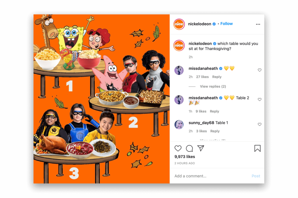 Если вопрос не открытый, то направьте его на конкретный предмет или тему. Либо дайте варианты выбора, как это сделал Nickelodeon в своем Instagram.