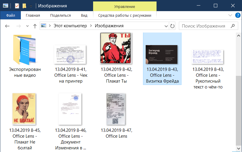 Все обработанные снимки хранятся в истории Office Lens, откуда их также можно запускать, как и непосредственно с жёсткого диска или внутри программ, куда осуществлялся экспорт.