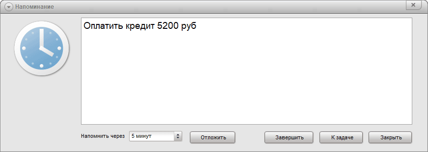 Предлагаемая же в этой статье Wise Reminder более удобна! О ней не видно и не слышно до времени… но как только миг напоминания придёт) Wise Reminder тут же известит нас о текущих планах бойким всплывающим окошком со звуковым сигналом, в котором, кстати говоря, также есть корректирующие подстройки, например «Отложить» оповещение на столько-то времени.