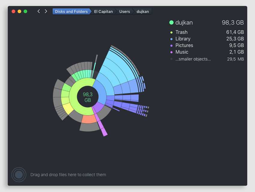 Утилита, которая не в последнюю очередь привлекает именно своим внешним видом, отлично подойдет для тех, кто привык держать свой Mac в чистоте. Она предназначена для поиска и удаления лишних данных, если на жестком диске вашего компьютера места в обрез.