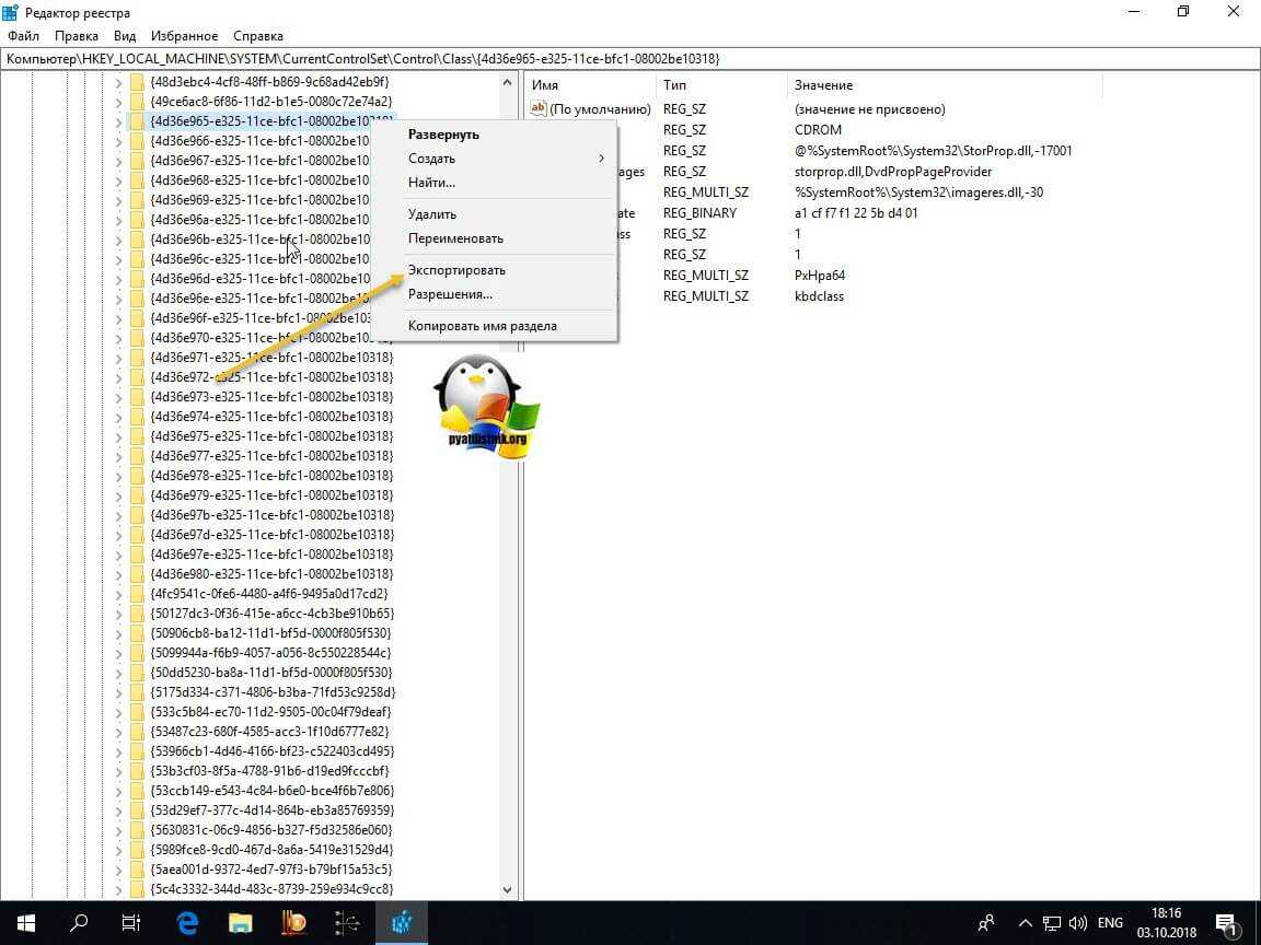 - Далее в реестре нужно перейти по пути: HKEY_LOCAL_MACHINE\SYSTEM\CurrentControlSet\Control\Class\{36fc9e60-c465-11cf-8056-444553540000}