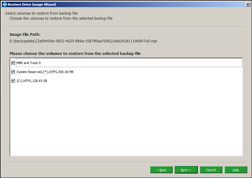 Если вы хотите восстановить на новый жесткий диск, убедитесь, что диск по крайней мере такой же, как тот, который содержит резервные тома, независимо от размера этих томов. Например, если во время резервного копирования только один диск 100GB на диске 1TB, мы должны использовать диск по крайней мере 1TB для восстановления.