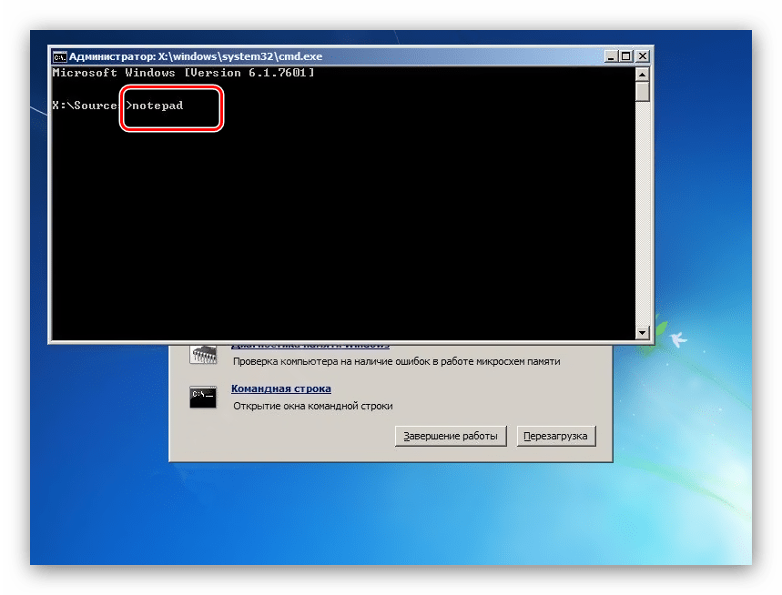 Должно появиться окошко «Командной строки», из которого вы уже сможете сбросить пароль.