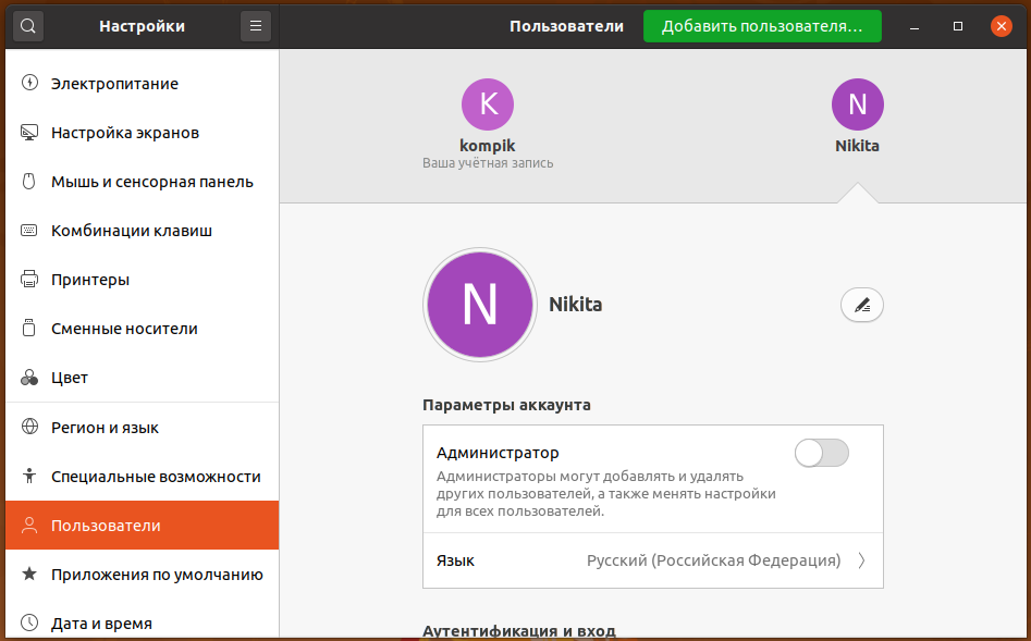 Откройте настройки системы, перейдите в раздел «Пользователи» и нажмите «Разблокировать»,