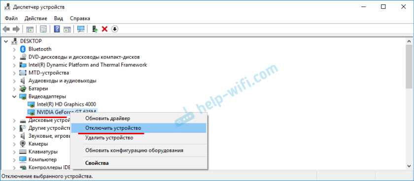 Если не помогло – сделайте наоборот, отключите встроенную видеокарту (обычно это Intel HD Graphics) и оставьте включенной дискретную.