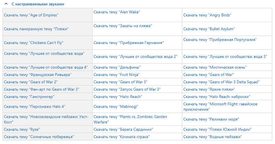 Одна из реализаций звуковых схем Windows – в темах оформления системы, причём в темах официальных, которые есть на сайте Microsoft. Идём по этому адресу: